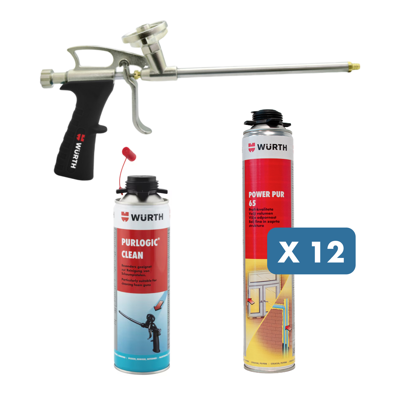 12 x Montažna visoko volumenska PU Pena + Čistilo za peno in Alu Economy pištola za nanos pene