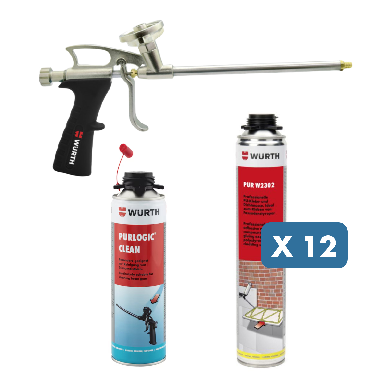 12 x PU pena lepilo za izolacijske plošče (750 ml), čistilo za peno in Alu Economy pištola za nanos pene