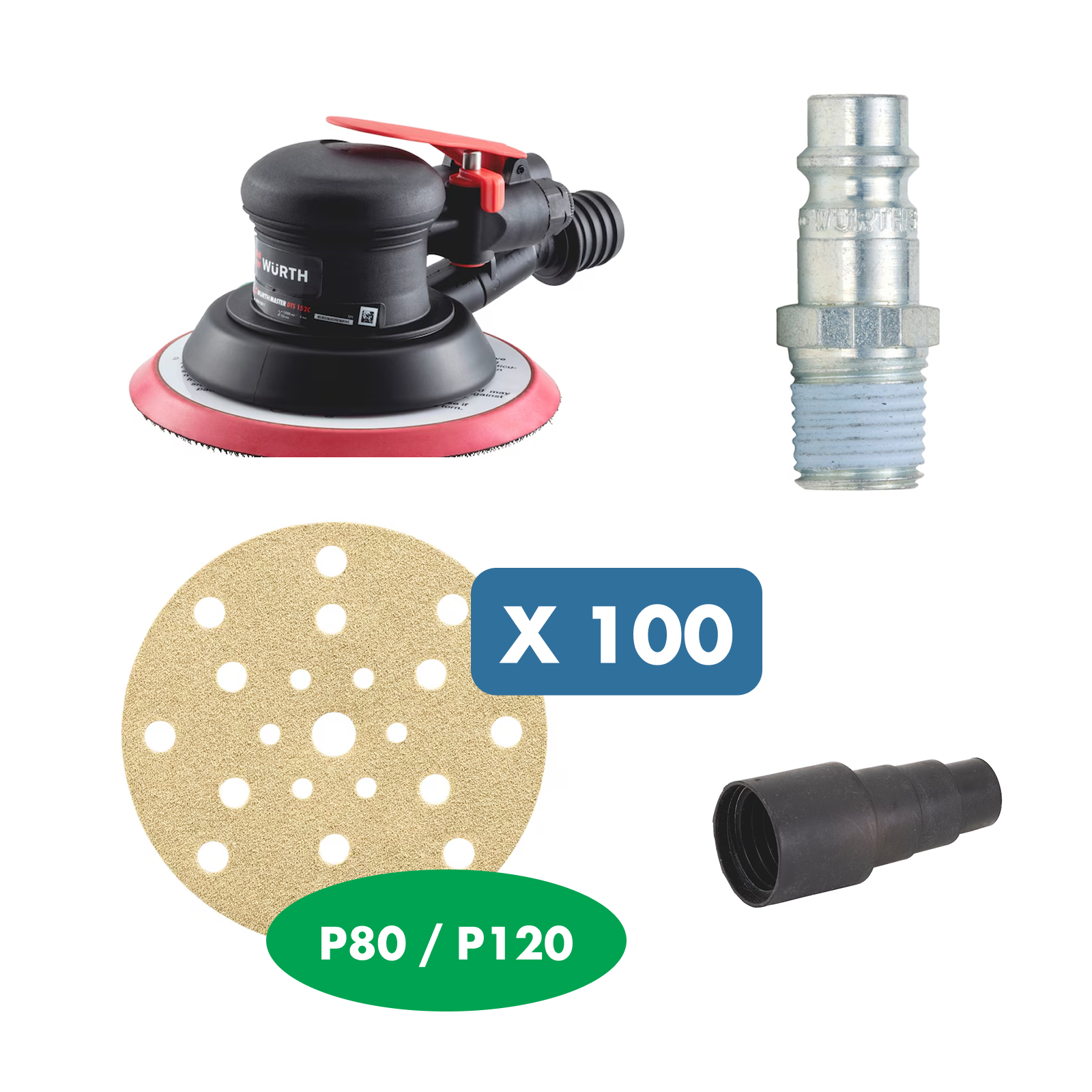Orbitalna pnevmatska brusilka 150/5 mm in 25 x brusni papir granulacije 80 + 120