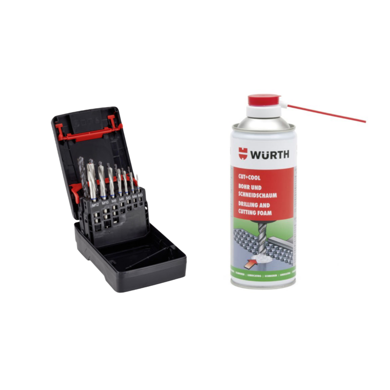 Kakovosten komplet spiralnih svedrov in strojných pip za natančno vrezovanje navojev v skozi luknje. Primeren za splošno uporabo v jeklih trdote do 850 N/mm². Kompaktno pakirano za ORSY® sistem.