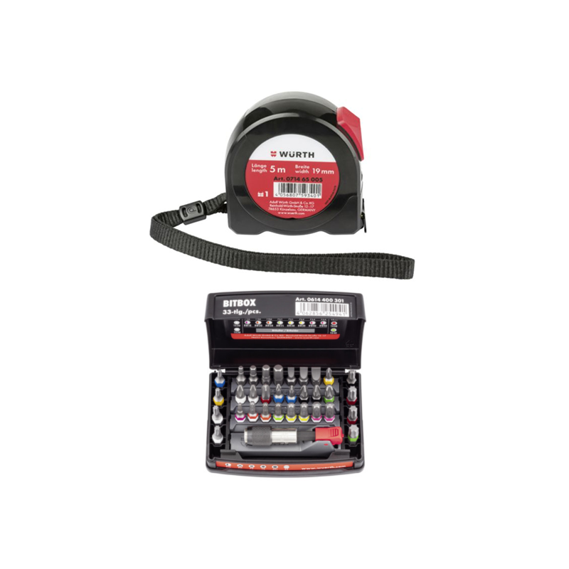 Kompakten in obsežen komplet nastavkov RW, PH, PZ, TX, notranjih šestkotnikov ter ravnih nastavkov, vključno z držalom. Primeren za ORSY® sistem shranjevanja.