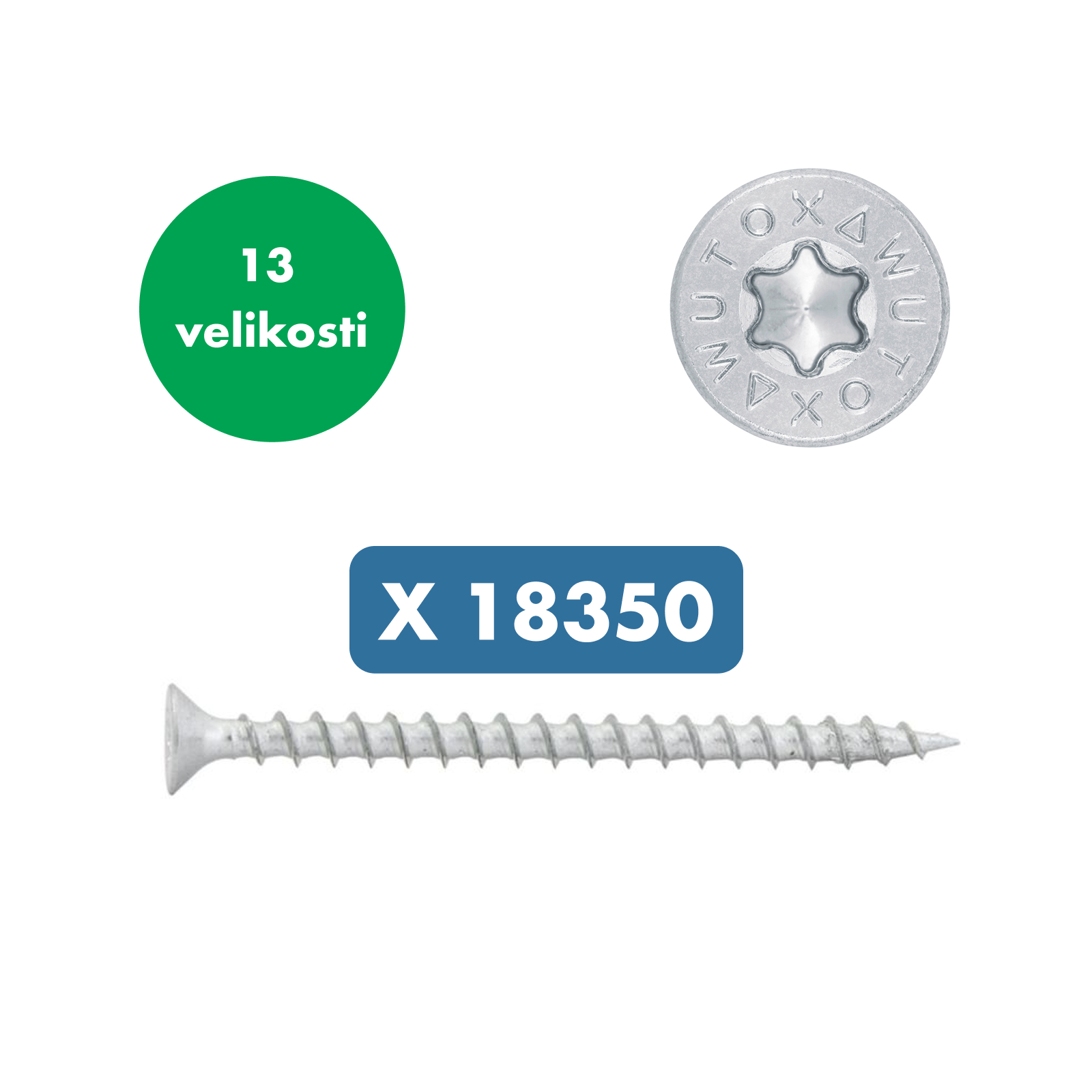 Set za mizarje z 18350 x lesnimi vijaki z ugrezno glavo in TX nastavkom "WUTOX"