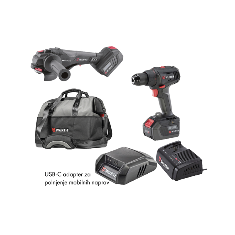 Set je primeren za širok spekter nalog, vključno z vijačenjem, vrtanjem in brušenjem, ter vključuje vse potrebno za učinkovito delo v gradbeništvu, montaži in popravilih.
