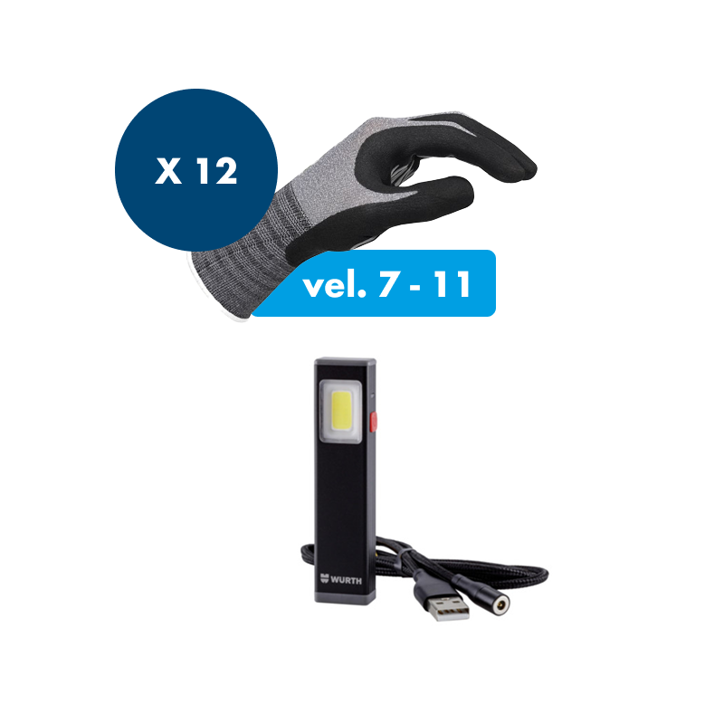 Set mini žepne svetilke in 12 kosov zaščitnih rokavic TigerFlex.