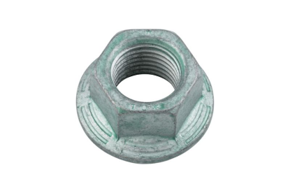 Nazobčana zaklepna matica z zaskočnimi zobmi, jeklo razreda trdnosti 8, pocinkano, modro pasivirano (A2K)