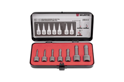 Rešitev težav z odtrganimi vijaki s šestkotno vdolbino in vijaki TX v najpogostejših velikostih v kompaktnem paketu. Pogosto se lahko uporablja tudi za podobne pogone.