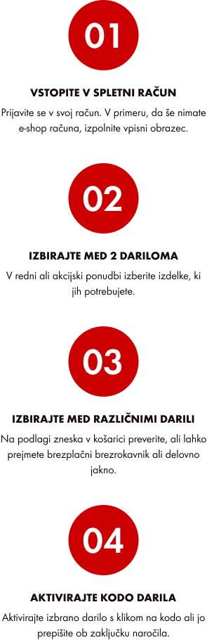*Pogoji so navedeni brez DDV. Darilo se na naročilo NE doda avtomatsko, kodo morate vpisati sami ali jo aktivirati s klikom. Darilo se navede kot »Promo izdelek« s simbolično ceno 0,1 €. Akcija daril velja do 1. 2. 2026 oz. do razdelitve zaloge.