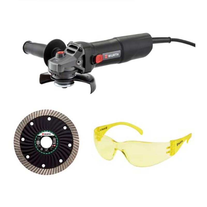 Set z diamantno rezalno ploščo za keramiko (125 mm), zaščitnimi očali in 750W kotno brusilko za lažja rezanja
