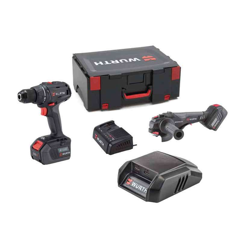 - Dve akumulatorski orodji M-CUBE® v enem kovčku z zmogljivimi baterijami M-CUBE® in hitrim polnilnikom