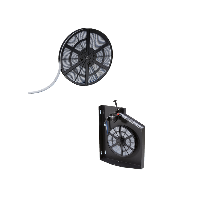 Lepilne uteži na zvitku za hitro odmerjanje in rezanje v delavnici.