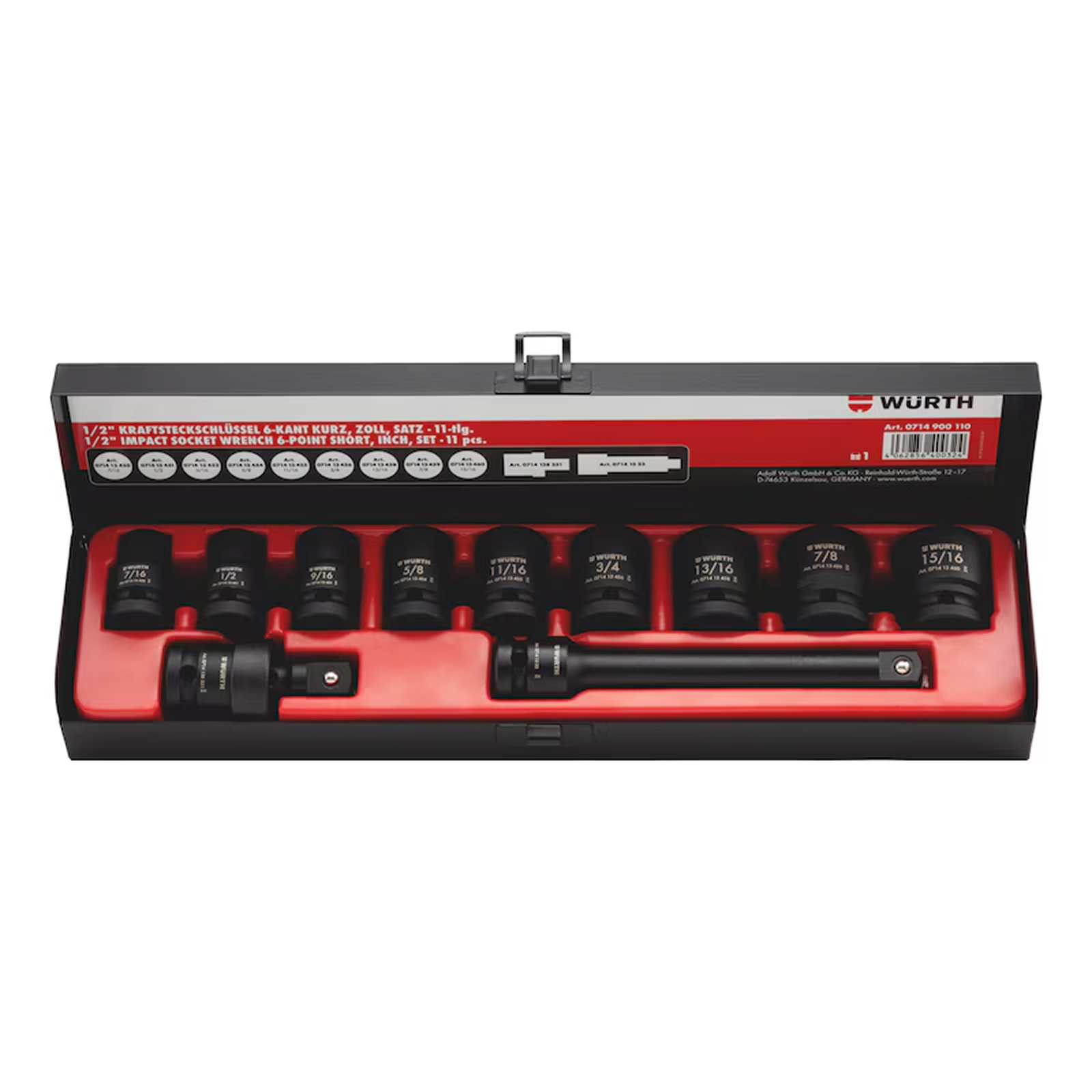 11-delni set 1/2" natičnih ključev je primeren za vse običajne pnevmatske in električne gonilnike.