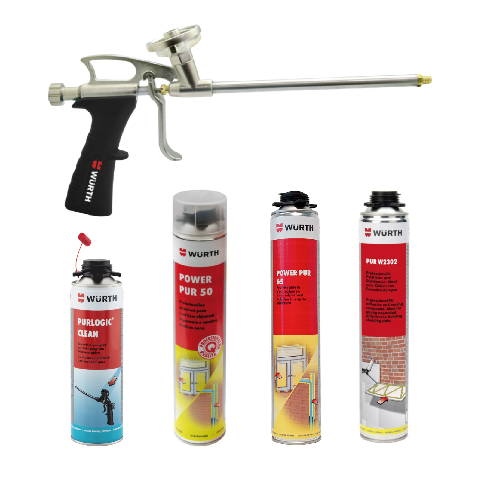 PU pena (800/750 ml), čistilo za peno (500 ml) in Alu Economy pištola za nanos pene