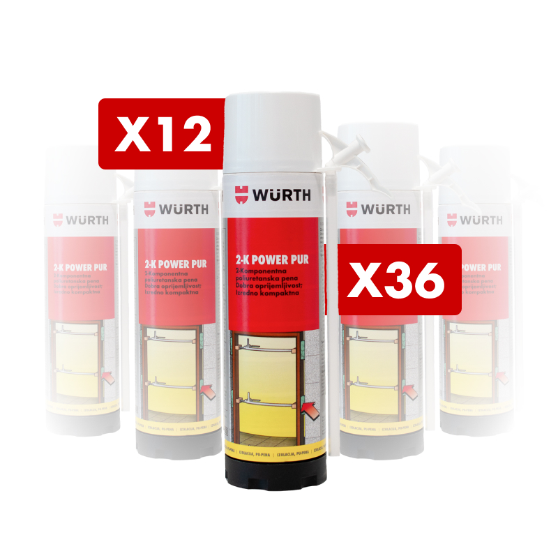 PU pena 2K Power PUR je zelo nizko ekspanzivna dvokomponentna pena za montažo okvirjev oken in vrat. Pripravili smo sete z različnimi količinami pločevink.