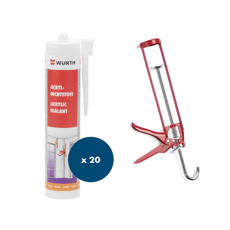 Set za tesnjenje in popravila razpok z akrilno tesnilno maso, primerno za različne površine, vremensko odporno in prebarvljivo.