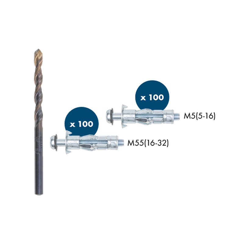 Set je namenjen zanesljivi montaži v votle stene z uporabo vložkov in vijakov, skupaj z večnamenskim svedrom za hitro in učinkovito pripravo lukenj.
