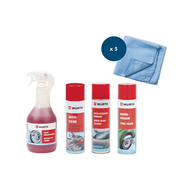 Set je zasnovan za čiščenje, nego in zaščito različnih avtomobilskih površin, vključno s tekstilnimi, steklenimi in kovinskimi deli, ter za vzdrževanje pnevmatik.