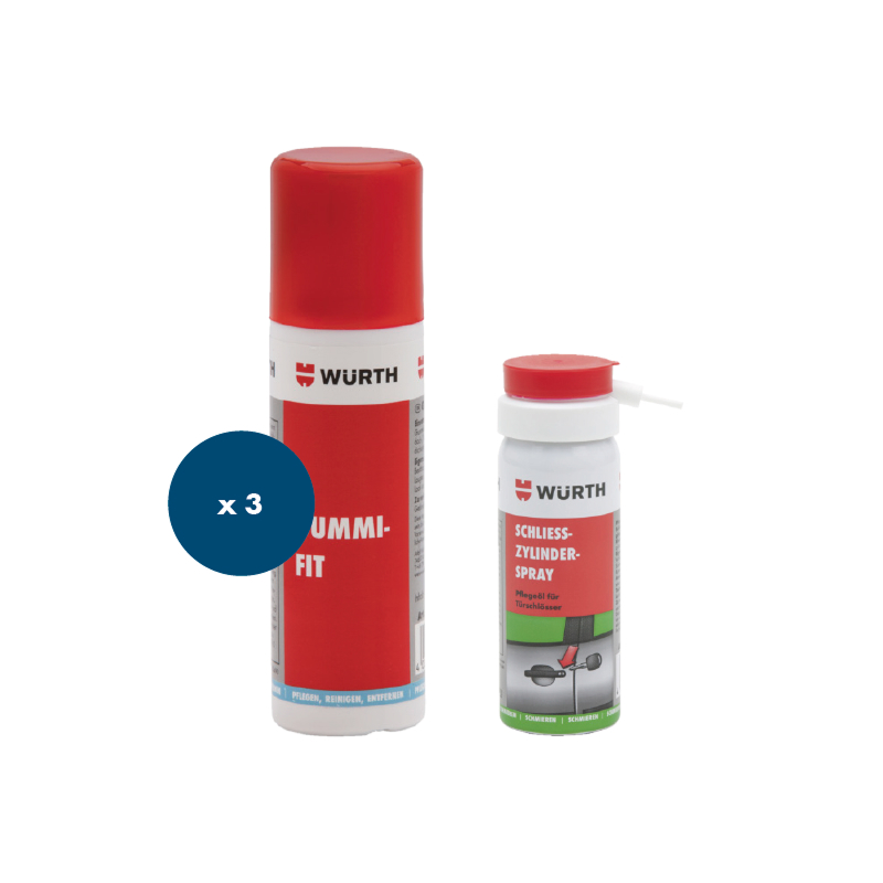 Set zagotavlja zaščito gumijastih delov in tesnil, podaljšuje njihovo življenjsko dobo ter preprečuje zamrzovanje v zimskih dneh. Specialno mazivo za ključavnice ščiti notranje mehanizme pred obrabo, korozijo in vlago, omogoča nemoteno delovanje v vlažnih pogojih.