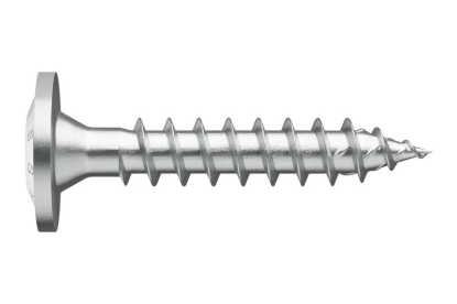 Vijak s polnim navojem iz visokokakovostnega avstenitnega nerjavnega jekla A2 z veliko ploščato podložno glavo za pritrjevanje strešnih skrilavcev ali tankih kovinskih plošč v živilski industriji v les na zunanjih površinah, izpostavljenih elementom.