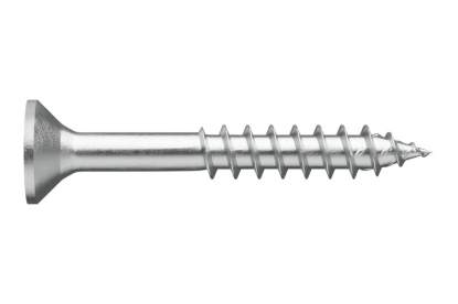 Univerzalni delno navojni vijak iz visokokakovostnega avstenitnega nerjavnega jekla A2 za spoje lesa z lesom (smreka) na zunanjih območjih, izpostavljenih elementom.